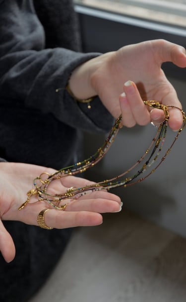 Chez Bïs, chaque bijou est bien plus qu'un simple accessoire : c'est une véritable déclaration d'amour pour l'artisanat et la créativité. Réalisées entièrement à la main, nos créations reflètent le savoir-faire unique et la passion qui les animent. Chaque détail est minutieusement travaillé pour offrir des pièces uniques et fabriquées avec le cœur.